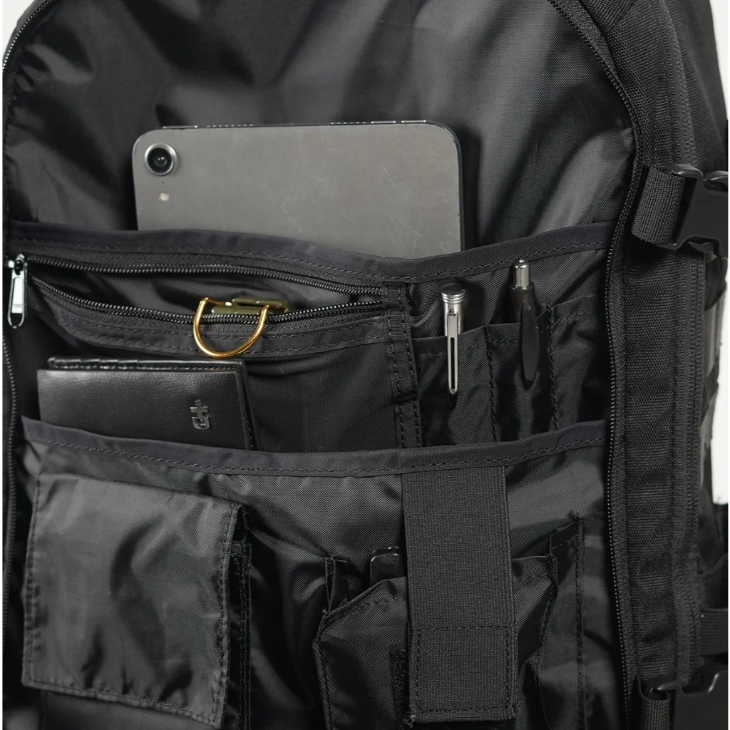 – 1 compartement utama dilengkapi compression strap, velcro dibagian sisi dalam, dan saku jala elastis